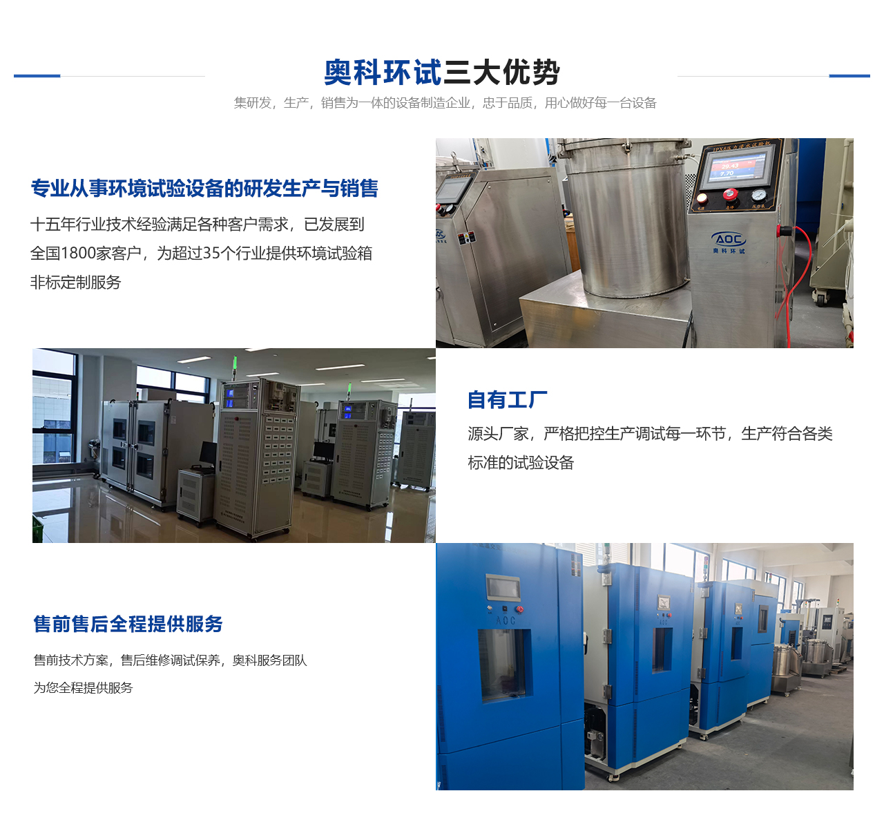 安徽奧科試驗(yàn)設(shè)備有限公司隸屬于杭州奧科環(huán)境試驗(yàn)設(shè)備有限公司直屬分公司,是一家從事各種試驗(yàn)設(shè)備研發(fā)、生產(chǎn)與銷售一體的技術(shù)單位??偣緭碛袕?qiáng)大的技術(shù)團(tuán)隊(duì)及科學(xué)嚴(yán)謹(jǐn)?shù)纳a(chǎn)流程,鑄就了產(chǎn)品質(zhì)量。公司本著“以質(zhì)量求生存,以信譽(yù)求發(fā)展”的原則,為科研、軍事、航空、電子、汽車、石油、化工、醫(yī)療、通訊等各大院校和企事業(yè)單位提供符合GB、GJB、IEO、ISO、ASTM、MIL、DIN等標(biāo)準(zhǔn)的各類環(huán)境試驗(yàn)設(shè)備,并可根據(jù)用戶的需求設(shè)計(jì)制造各類非標(biāo)性設(shè)備。奧科奉行“進(jìn)取求實(shí)嚴(yán)謹(jǐn)團(tuán)結(jié)”的方針,不斷開(kāi)拓創(chuàng)新,以技術(shù)為核心、視質(zhì)量為生命、奉用戶為上帝,竭誠(chéng)為您提供高性價(jià)比的自控產(chǎn)品及無(wú)微不至的售后服務(wù)。